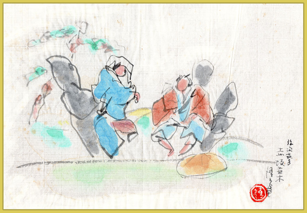 『弥次喜多 赤坂並木』 軸装下絵 から